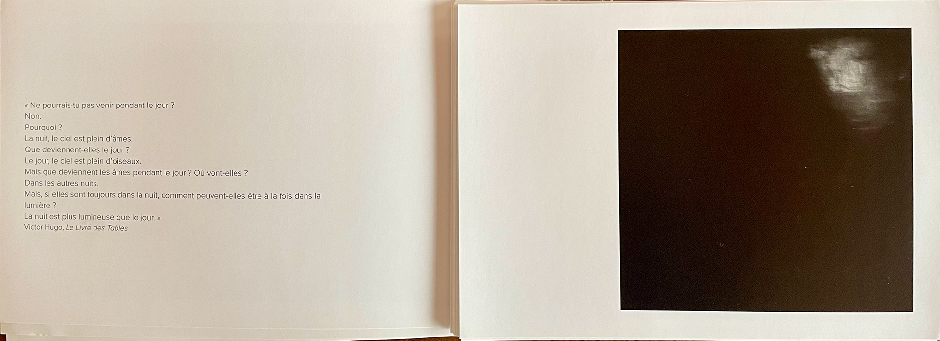 En regardant ses images vient la sensation qu’il y a quelque chose derrière. « L’inaperçu, l’ineffaçable » dirait Edmond Jabès. Rien de précis, tout de sensible. « Pourvu qu’une photographie soit un poème, qu’elle subvocalise le regard», espère t-il. Une recherche naïve de la beauté, de l'esprit, du silence. Satisfaire ce besoin de disponibilité, d'éveil, d'attention au monde, d'imprégnation. C'est aussi un travail sur la disparition, l'effacement... la symbiose. Prise de vue spontanées sur ce qui est sur le chemin. Parfois sous la pluie de la vitre d'une voiture ou derrière un plexiglass orange qui donne sa matité au cliché. Ses photographies imaginent les chemins empruntés par les âmes entre les mondes du visible et de l’invisible, esquissent leurs lieux de rencontre au coeur de la beauté mystérieuse du vivant, leurs palabres avec les oiseaux dans une forêt bleue, interrogent le devenir de Sapiens, debout en bord de mer, au bord du bord…